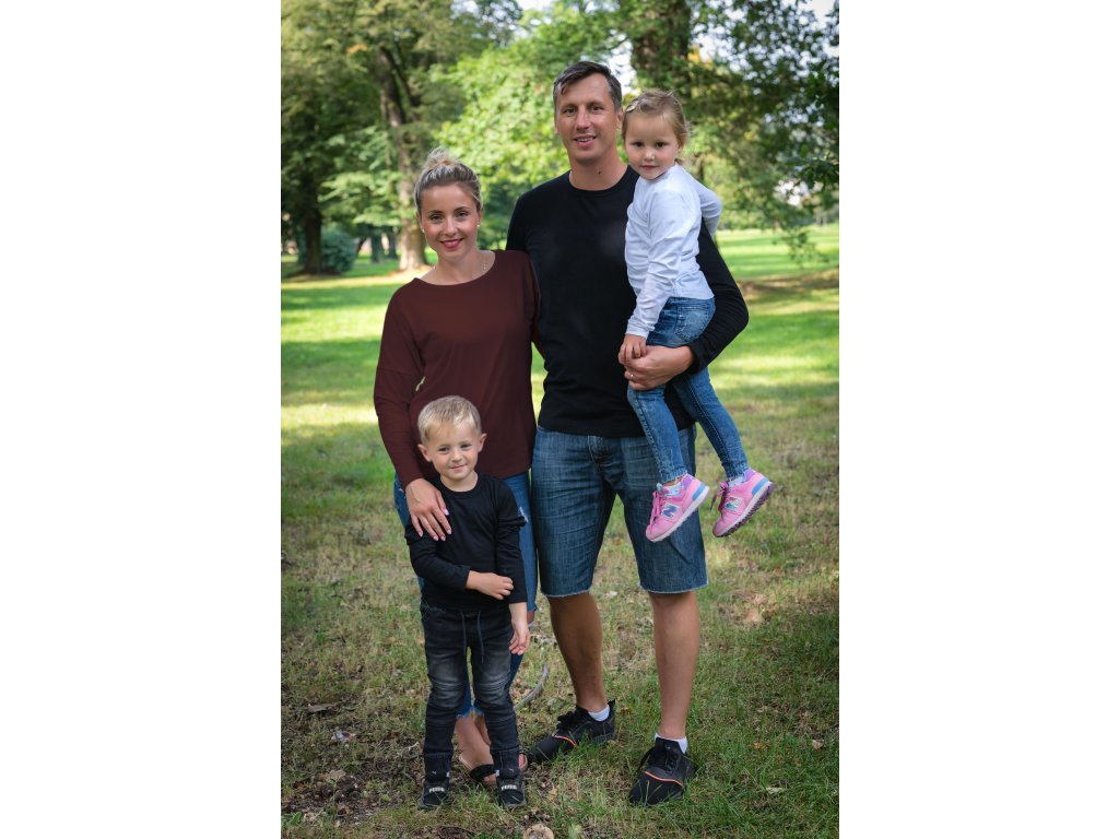 Klučičí, holčičí, chlapecké a dívčí tričko basic střihu s dlouhým rukávem a zajímavým švem na zádech.