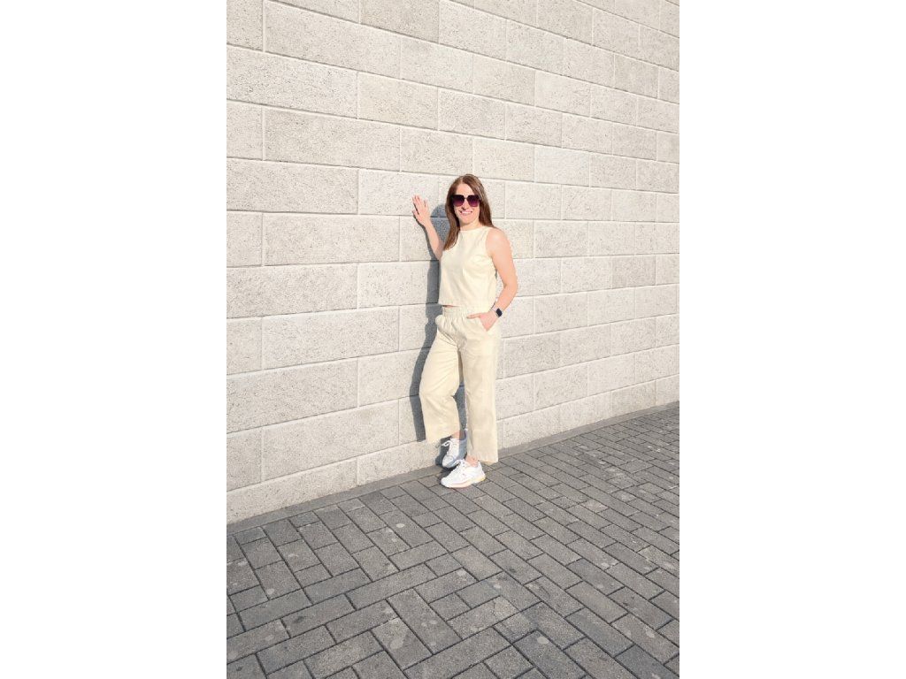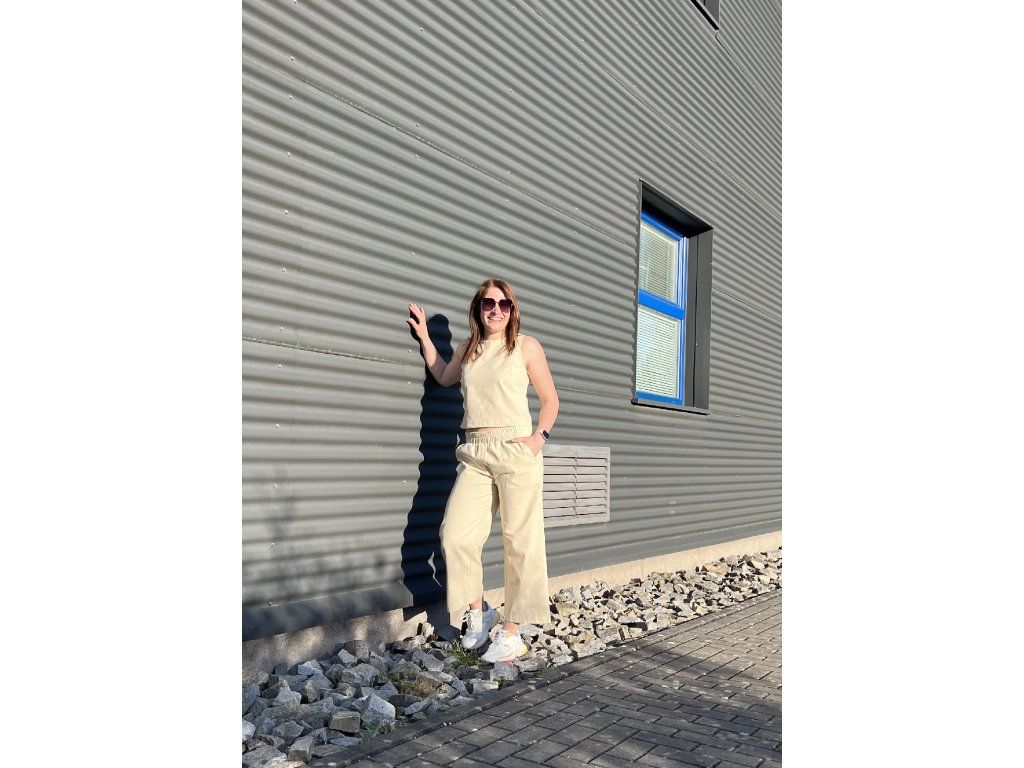 Top má krásný volný střih a délku tak, aby Vám ladil ke kalhotám.